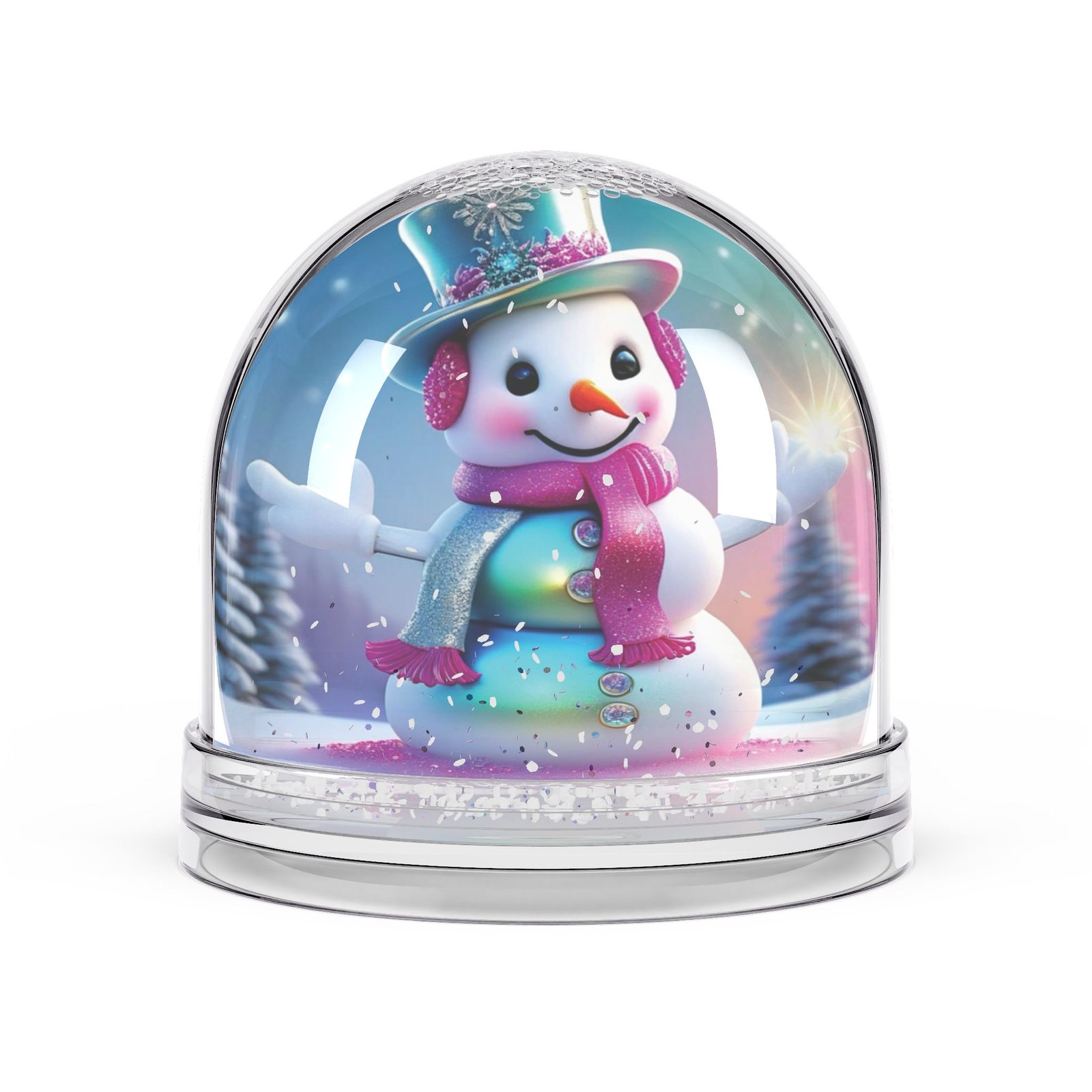 The custom design is printed on high-quality paper, ensuring a beautifully preserved design. This snow globe is the perfect blend of personalization and charm, making it an ideal gift or a special addition to your home decor.